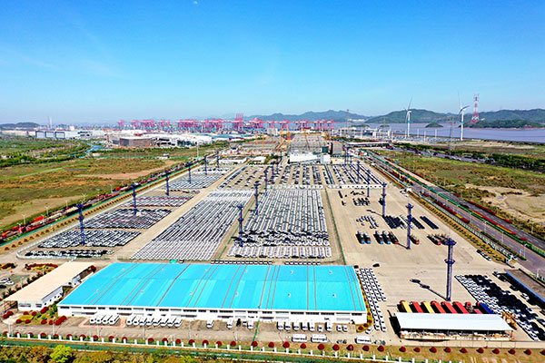New energy vehicles stockpiled at a port in Ningbo, Zhejiang province. [Photo/cnnb.com.cn]