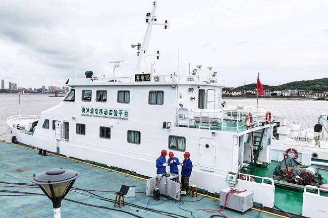 The onshore power transmission mobile platform is launched in Zhoushan, Zhejiang province. [Photo/WeChat account: zjzsqdxq]