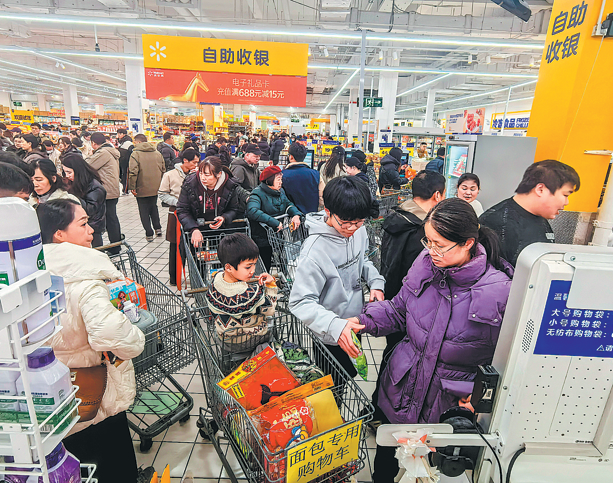 A Walmart store in Optics Valley of China in Wuhan, Hubei province, is bustling with shoppers on Feb 8. ZHU XIYONG/FOR CHINA DAILY