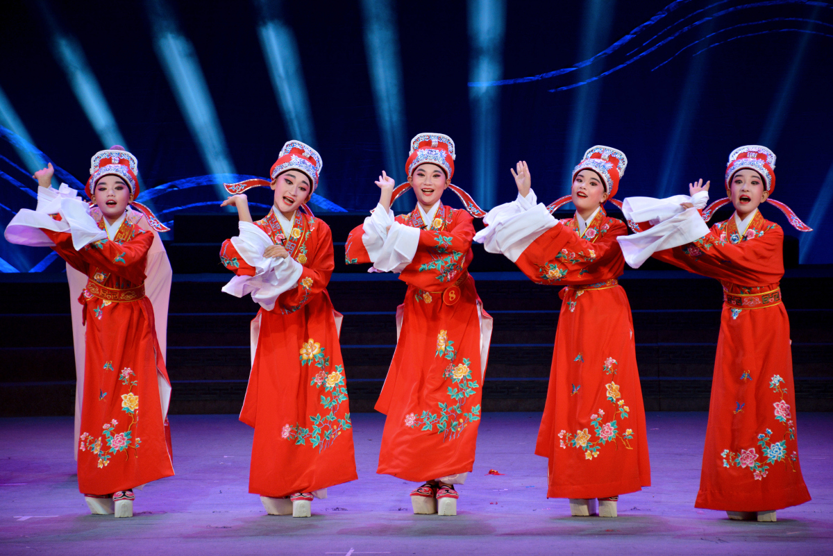 Tan Huang, initially known as "An Kang" or "Hang Tan", was a folk art performance prevailing around Hangzhou. It featured four types of roles covering the male character, female character, character with a painted face and clown and the cast usually consisted of five to nine performers. Its lyrics were mainly composed of seven sentences and the singing was always accompanied by such instruments as San-Xian (Chinese tri-chord), Hu-Qin (two-stringed Chinese violin), pi-pa, Sheng (a reed pipe wind instrument), Xiao (a vertical bamboo flute), flute and Gu-Ban (clappers). It died out during the "Cultural Revolution". Now the only things left are the recorded 120 traditional acts.