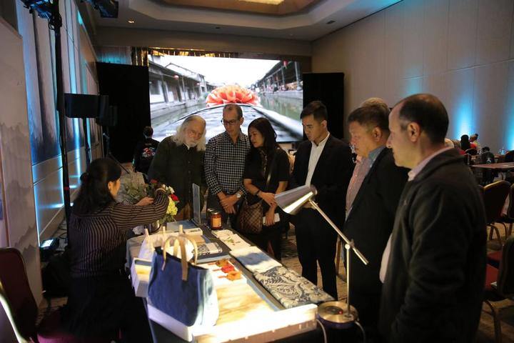 The wonderful dance performance, that showed off the characteristics of regions south of the Yangtze River, won warm applause from the audience. In the exhibition area, the attendees enjoyed and experienced our intangible cultural heritage in a friendly atmosphere, with items such as fan art, stone carving, and the tie-dye technique of the time-honored brand "Wangxingji".