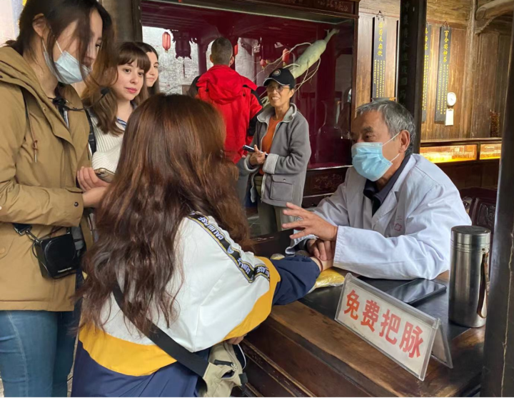 The Tianyitang Medicine Store at Zhuge Bagua Village was built during the Tongzhi Emperor period of the Qing Dynasty, with a history of more than 140 years, and its founder and successors have followed the ancestral motto of "To be a good prime minister or to be a good doctor" for generations. During the tour, the group of international cultural newcomers had a try at the Chinese medicine consultation and were really impressed with these ancient oriental medicine techniques. Joo Hanna, a girl from Korea, was very excited and said "The Traditional Chinese Medicine is so amazing!". Hanna has been living in Zhejiang for almost two years and is getting to be a big fan of Chinese culture. After trying the consultation by being held her pulse, she was very surprised and said "He just took a glance at my tongue and was able to tell my condition accurately.