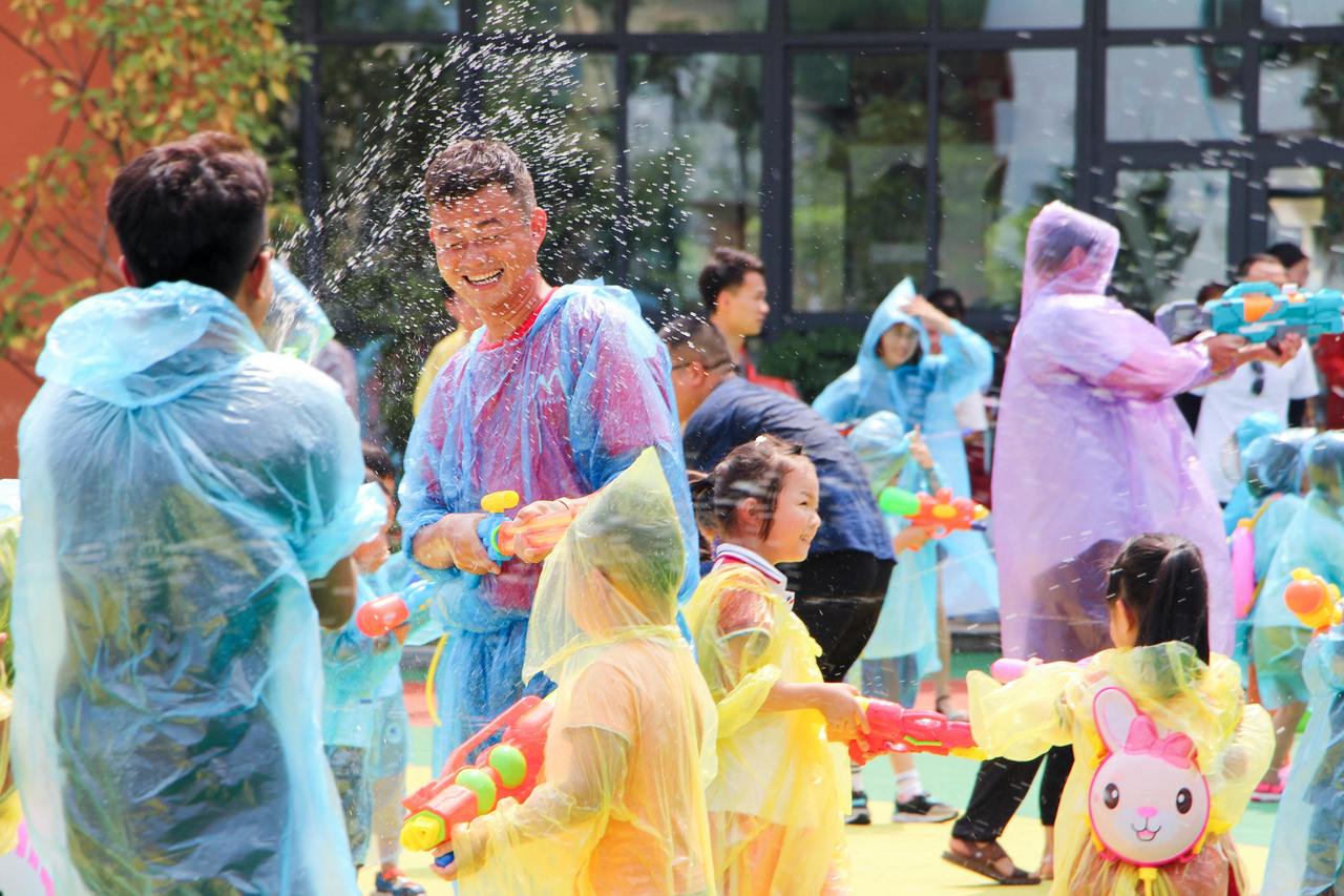 On June 14, 2019, children and their parents were playing water at the Lincheng Town Central Kindergarten in Changxing County, Zhejiang Province.