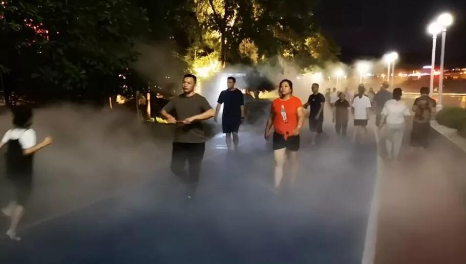 It is a livelihood improvement project implemented by the Lishui Municipal Water Conservancy Bureau. A cooling system, also known as fog system, with a length of about 2.5 km has been set in different sections in areas around Xiaoshuimen Bridge, Zijin Bridge and the riverside landscape belt.
