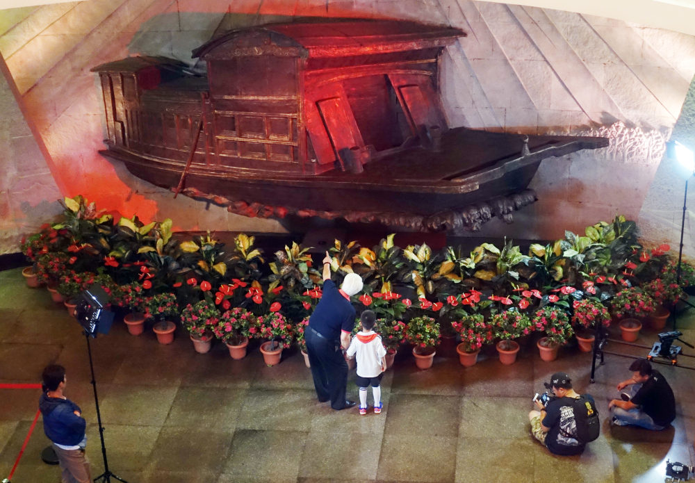 Photo taken on June 19 shows a TV cast shooting for the scenes at the Nanhu Revolutionary Memorial Hall in Jiaxing City, Zhejiang Province.