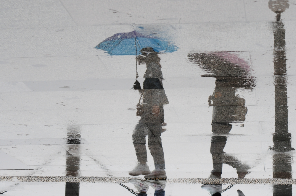 The gloomy sky and the continuous precipitation are to stay for the time being, as Hangzhou enters the Meiyu season or the East Asian rainy season. The images of tourists reflected on the ground at the West Lake Scenic Area turned into a classic Chinese ink painting.