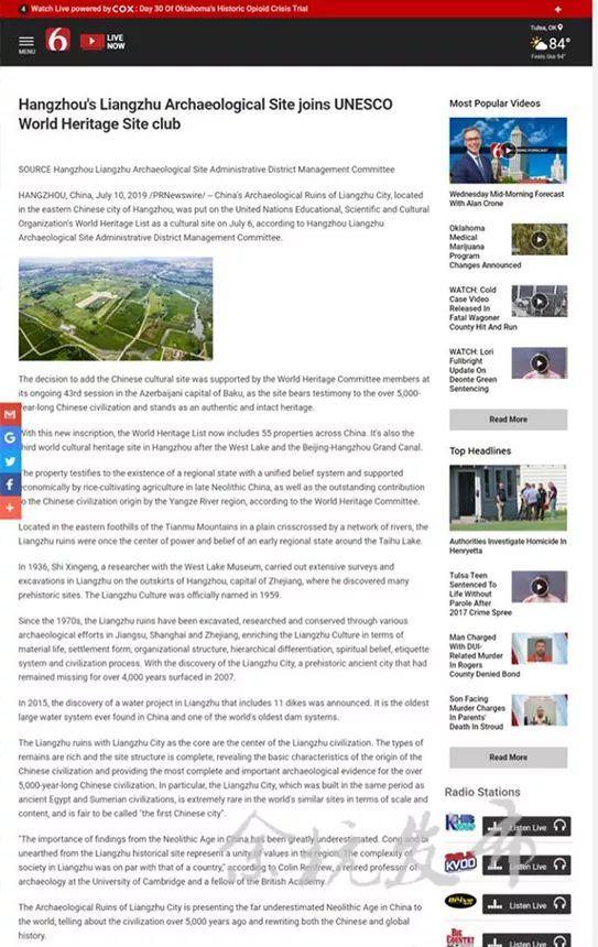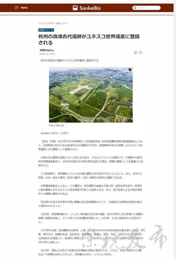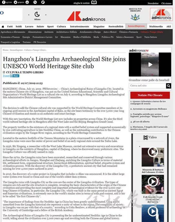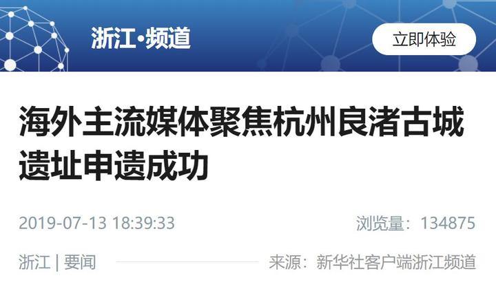 Recently, Xinhua News Agency reported on the newly inscribed World Heritage Site - Archaeological Ruins of Liangzhu City. Liangzhu has gained world attention from mainstream overseas media, said Xinhua report.