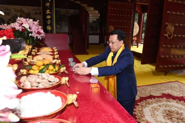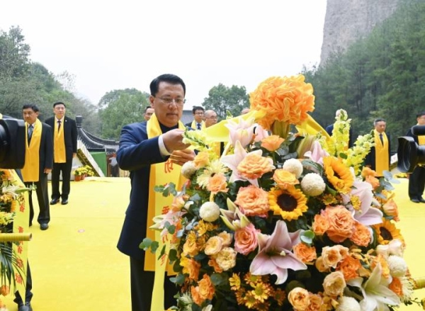Wu Xiaodong, the mayor of Lishui City, read the funeral oration in front of the Yellow Emperor Temple.