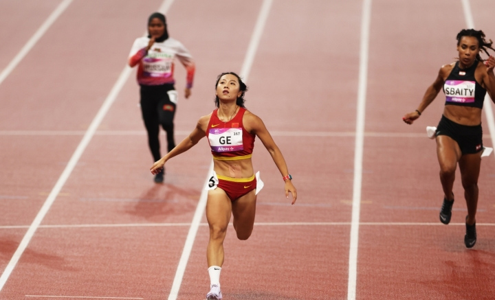 On the evening of September 29, in the women's 100m preliminaries of the track and field competition, China's Ge Manqi set a season's personal best of 11.17 seconds to advance to the final at the top of the group.