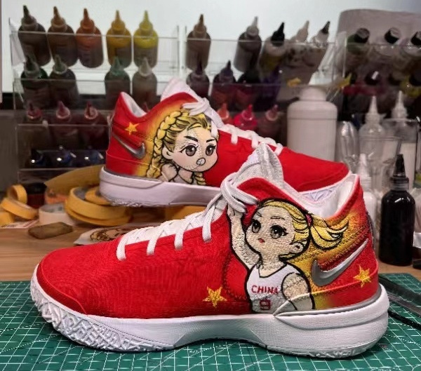 In December of that year, Wang Haibo was entrusted by fans to help CBA star Chen Peidong paint customized shoes. From then on, he began his career of painting shoes for players. Shen Zijie and He Xining are both his old customers. Later, his customer base expanded to include female basketball players and even NBA players.