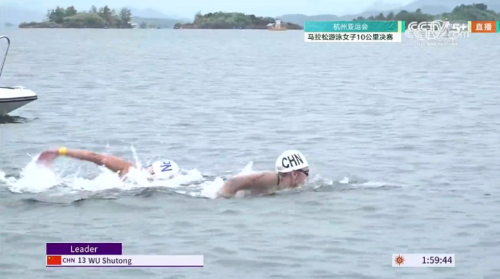 On October 6, Chinese athlete Wu Shutong won the gold medal in the women's 10-kilometer marathon swimming competition at the 19th Asian Games in Hangzhou.