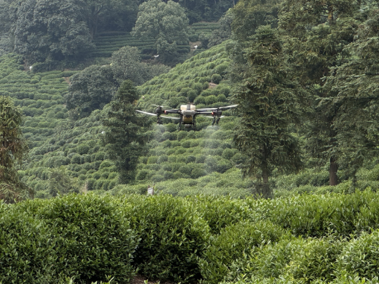 Thirty tea-producing villages in Zhuantang, Hangzhou's Xihu district, recently received over 1,190 metric tons of organic fertilizer. This year, for the first time, drones were used to transport the fertilizer, delivering up to 8 tons per day across 2 hectares of tea fields, significantly boosting productivity.