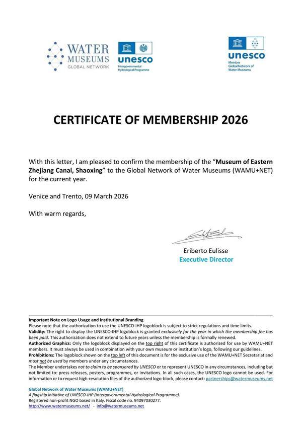 The Zhejiang East Canal Museum has become the latest Chinese water culture institution to join the Global Network of Water Museums (WAMU-NET), following the National Water Museum of China, the Yellow River Museum, and the Changjiang Civilization Museum, opening further opportunities for international exchange.