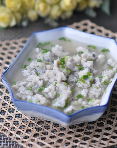 Wenzhou Fish Ball is made of the fresh meat of brown croakers (Actually they are not spherical but in irregular shapes). First, cut the croaker meat into narrow strips, soak them in a mixture of wine, MSG and salt for about 20 minutes. Secondly, add a small amount of starch to the strips and hold them tightly between fingers for multiple times till they stick to each other. Thirdly, pinch off small pieces of the mixture one by one into the boiling water until they float. Fourthly, serve the fish balls in a small bowl,along with part of the boiling water as soup, and add rice vinegar, MSG, pepper powder and chopped green onion. The fish ball shops are distributed here and there in Wenzhou city proper. In Dec. 1998, Wenzhou Restaurant’s fish ball with unique and good taste, and Xianqian Tangyuan Shop’s sesame filling Tangyuan were identified as “China’s Famous Local Snacks” in an event held in Hangzhou by the former Ministry of Domestic Trade.