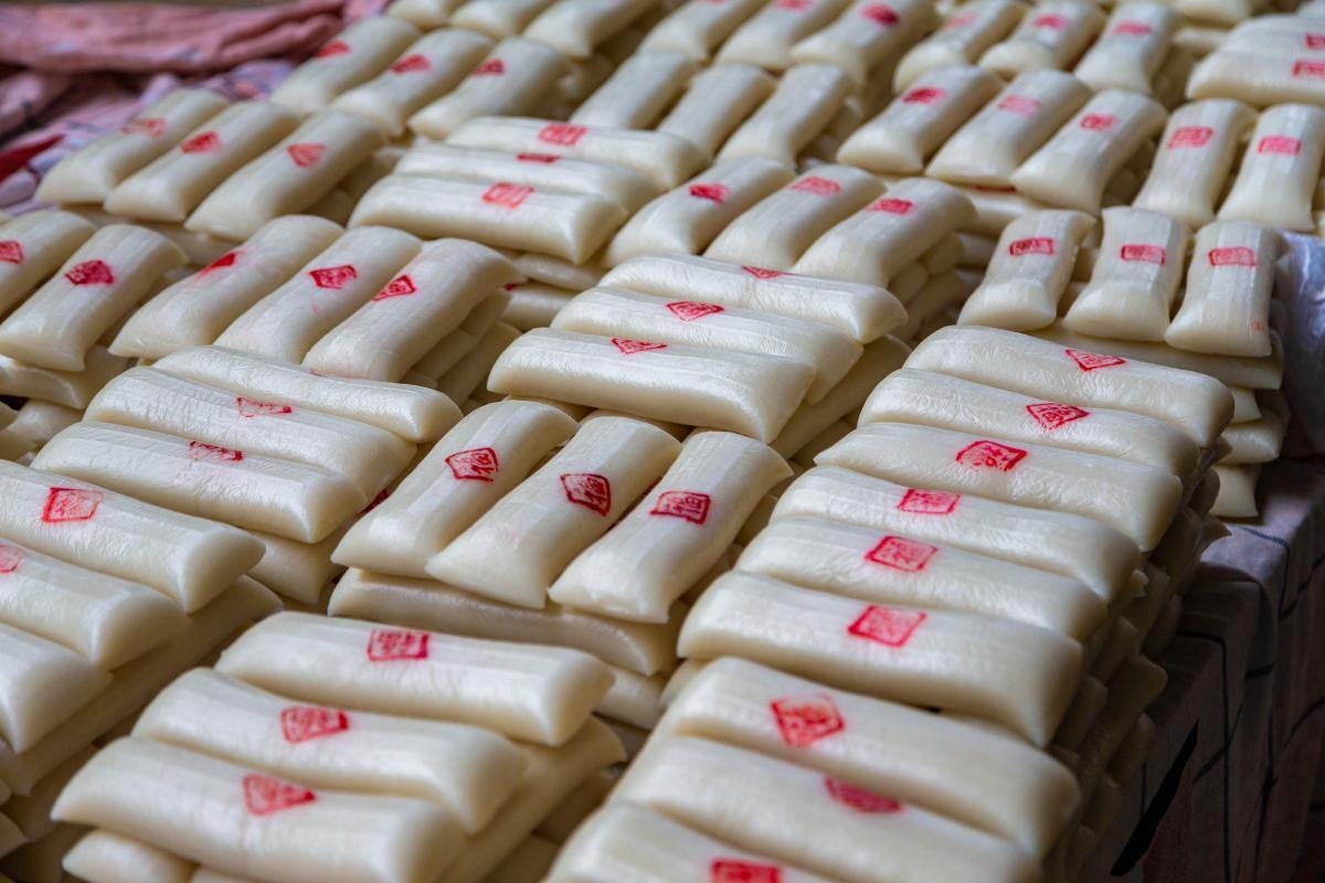 Niangao is a food prepared from glutinous rice and consumed in Zhejiang cuisine. Sharing a similar pronunciation to “higher year” in Chinese, this kind of food is considered to be propitious and lucky. Also known as a rice cake, this sticky sweet snack was believed to have been an offering to the Kitchen God, so that his mouth would be stuck with the sticky cake and he could not badmouth the human family in front of the Jade Emperor.