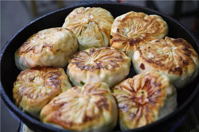 The boss is young but skillful. There are four kinds of pancakes in the store, i.e. the one stuffed with preserved vegetable (a bit sweet), scallion oil pancake, meat pancake and spring onion pancake. As the classification was different from that of downtown Quzhou, I ordered a pancake with preserved vegetable and a meat pancake.