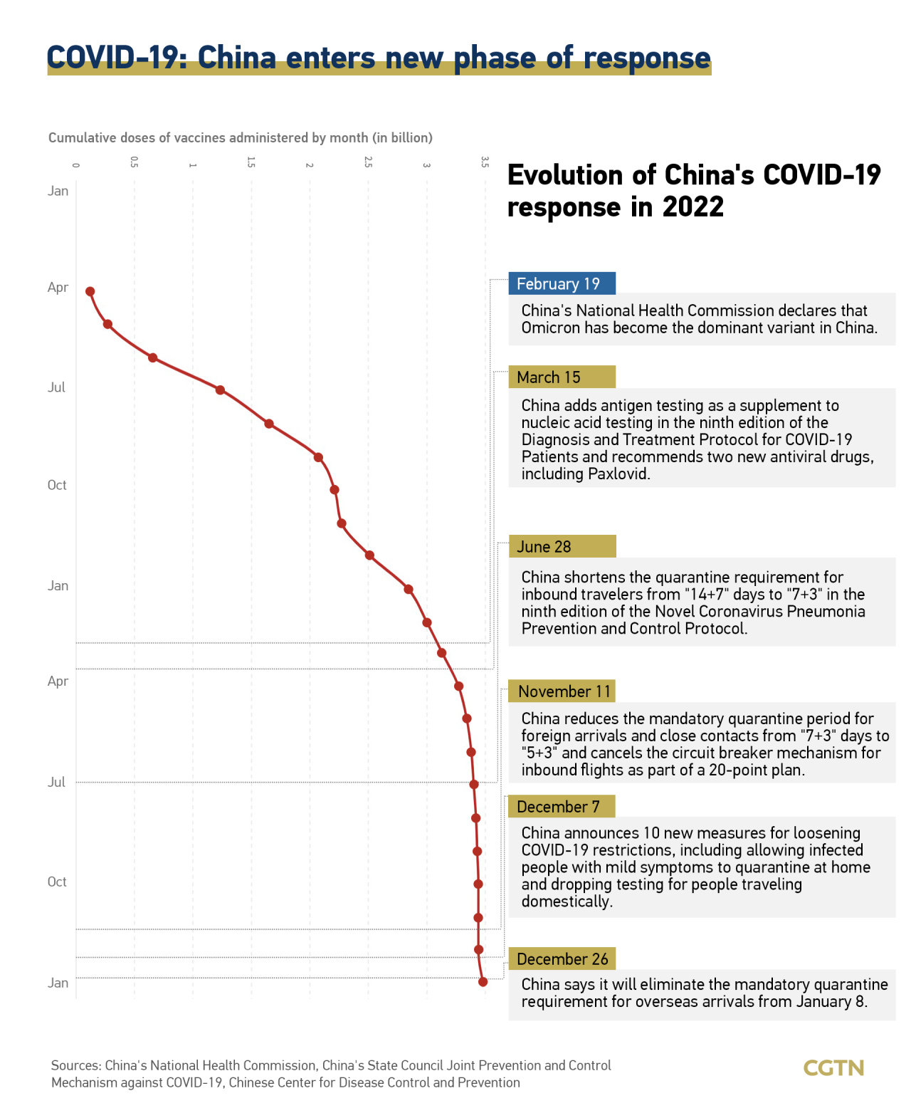 Starting from January 8, the country will downgrade management of COVID-19 from Class A to Class B in accordance with the law on the prevention and treatment of infectious disease, a major shift of its epidemic response policies.