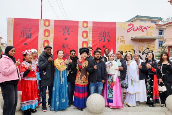 A group of international visitors from seven countries gathered with ethnic minority locals in Wugen town, Wenling — a county-level city in Taizhou, Zhejiang province — on Feb 11 to celebrate Lantern Festival.