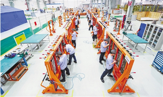 西子联合控股有限公司连续21年上榜“500强”榜单。图为西子势必锐航空制造中心的空客A320起落架舱装配线。 企业供图