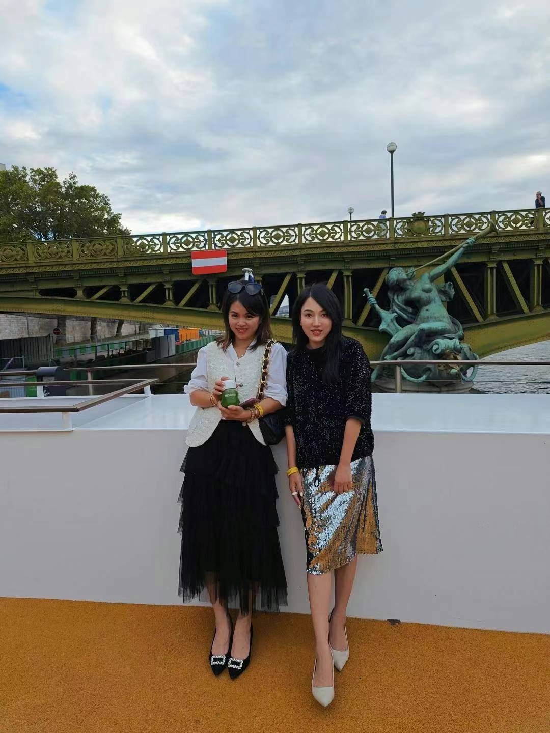 王勤弟(左)和包培培(右)带着轻元素品牌参加巴黎的中秋游船活动