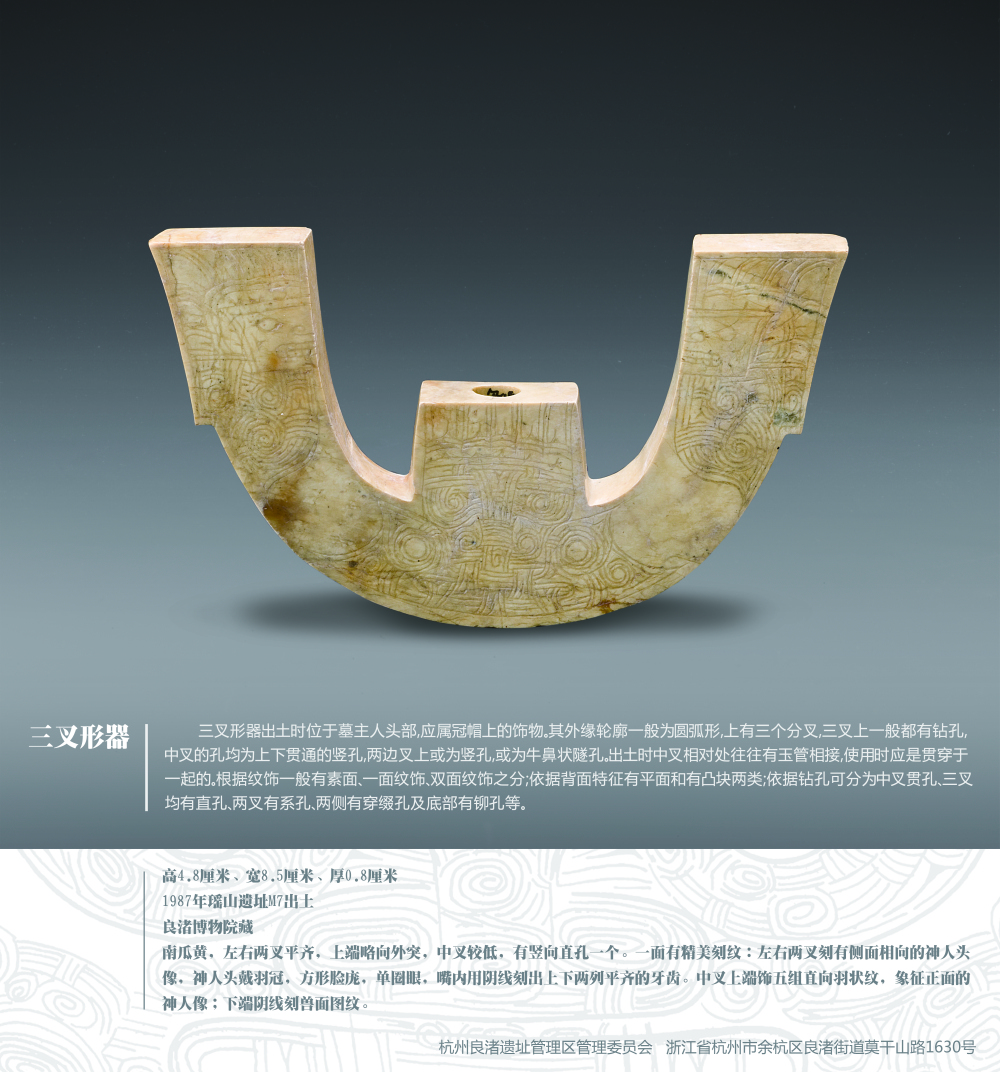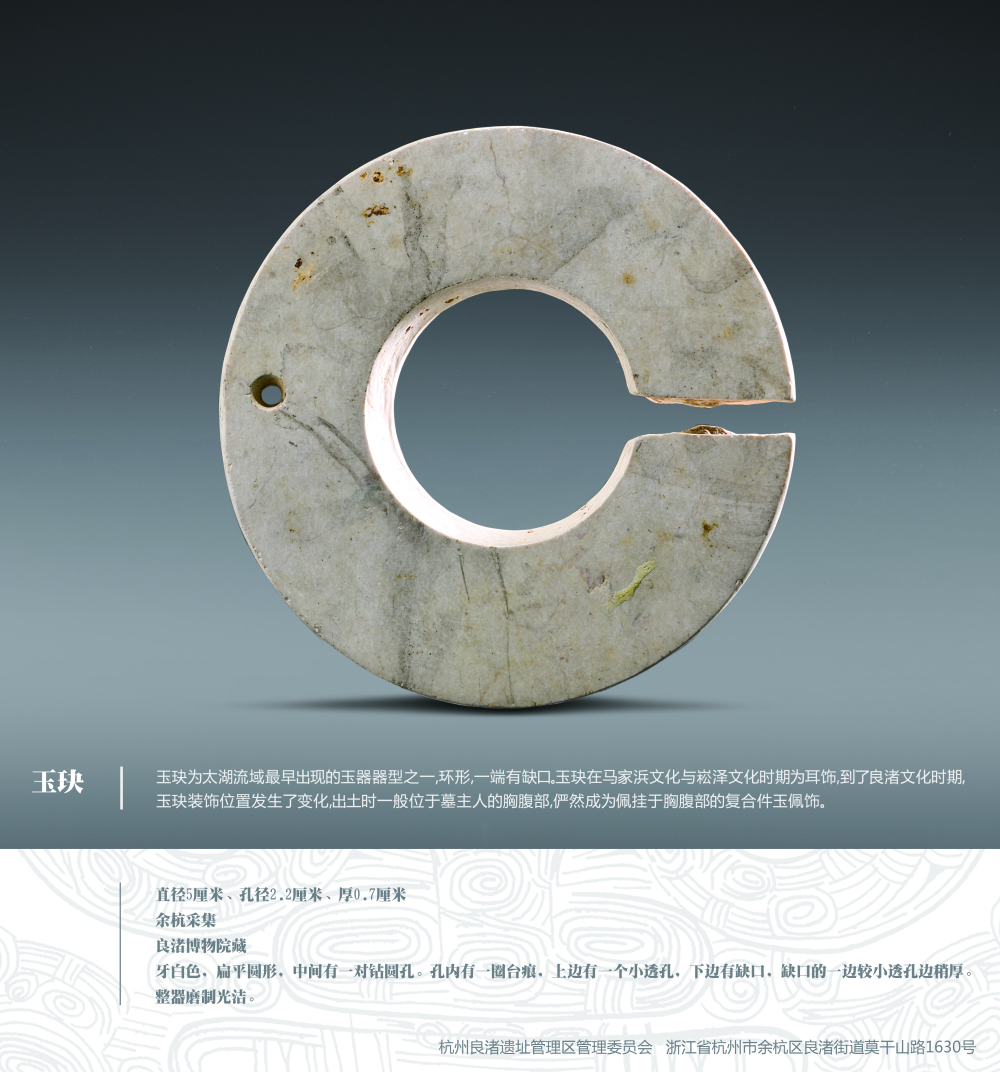 Jade jue, with a gap at one end, was used as earring in the early days and pendant hanging on the chest and abdomen during the Liangzhu period.
