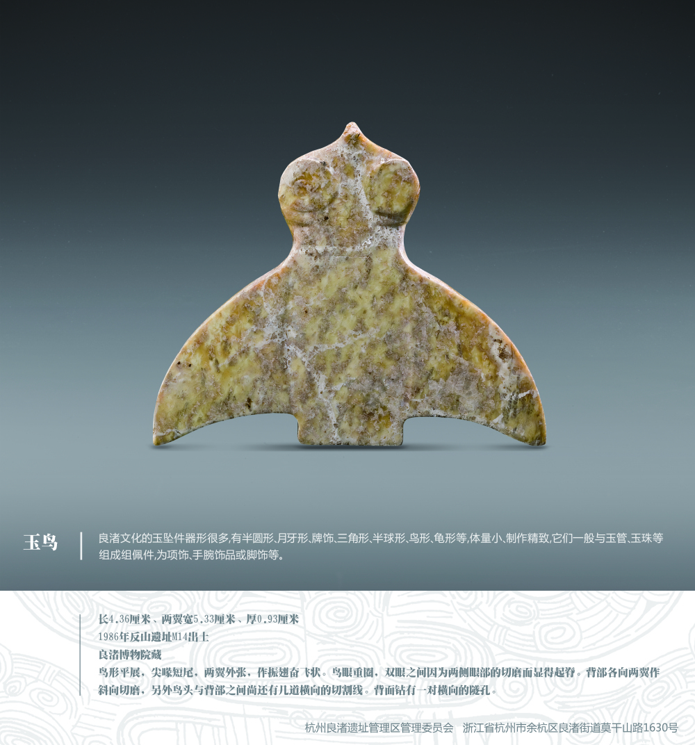 Being able to fly, birds were believed to have the ability to communicate with gods. And jade birds, among the jades unearthed from Liangzhu Archeological Site, once may have been patched on the clothes of the shaman for a better communication with the gods.