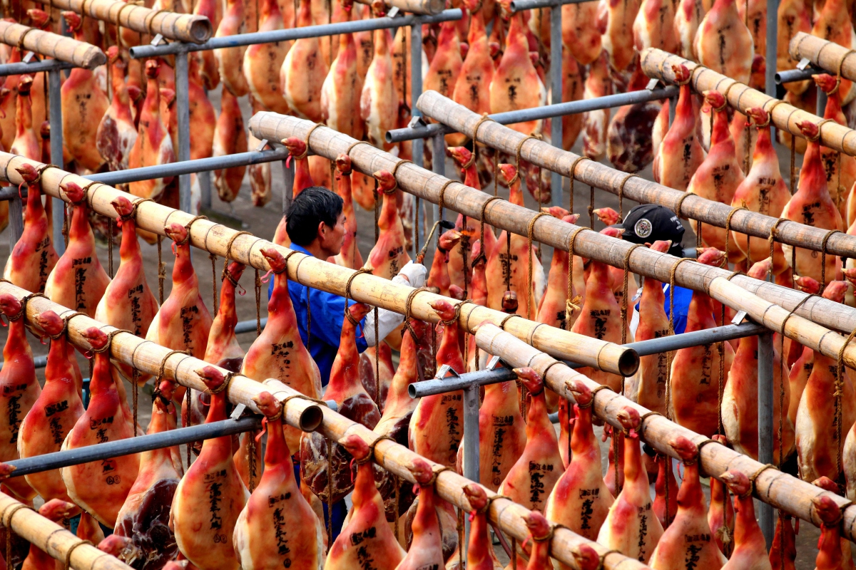 Jinhua is rich in red soil and forest resources. The Jinhua or Wu River flows through the Lan and Fuchun to the Qiantang River beside Hangzhou, which flows into Hangzhou Bay and the East China Sea. In medieval China, it formed part of the water network feeding supplies to the southern end of the Grand Canal. It is best known for its dry-cured Jinhua ham.