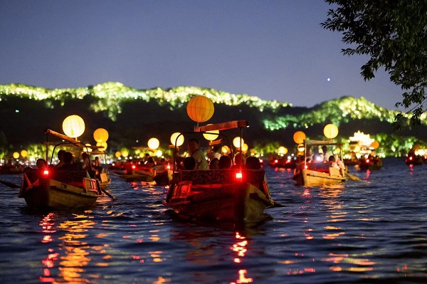 West Lake offers tourists a nighttime boat tour. [Photo/tidenews.com.cn]