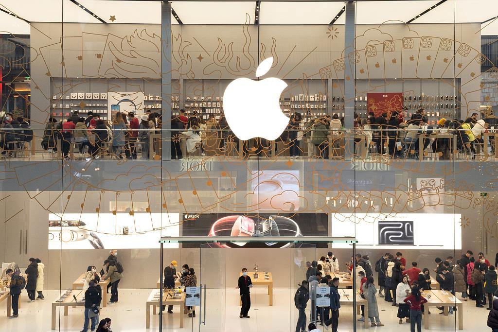 Consumers select products at an Apple store in Chengdu, Sichuan province, Feb 23, 2024. [Photo/VCG]