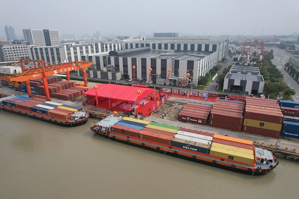 Tongxiang, which produces about 25 percent of the world's glass fiber materials, established its export base in 2011. The new route facilitates the export of its products, shifting from road transport to a multimodal river-sea system.