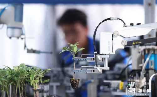 Automated grafting robots work at a farm in Tongxiang county-level city, Jiaxing, Zhejiang province. [Photo/Tide News]