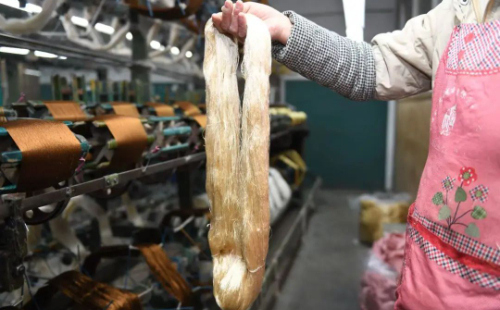 Mulberry silk is processed in Jiaxing, Zhejiang province. [Photo/Tide News]