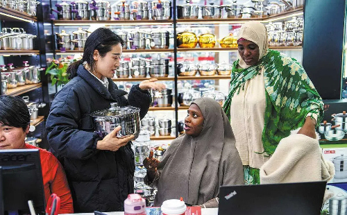 Buyers negotiate cookware deals in the Yiwu International Trade Market on Dec 11. [Photo provided to chinadaily.com.cn]