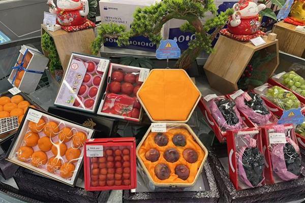Jiaxing Zuili plums in hexagonal gift boxes are seen at a Dubai supermarket. [Photo/Tide News]