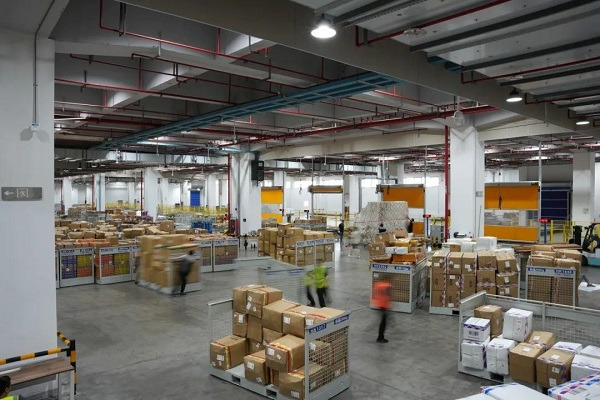 Things get busy at a warehouse at Hangzhou International Airport. [Photo/tidenews.com.cn]
