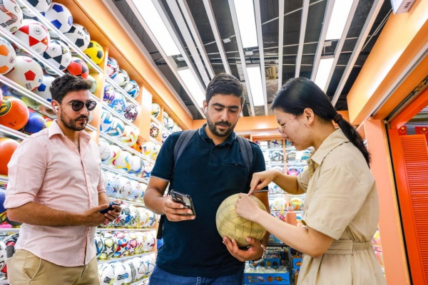 Buyers select sporting goods in Yiwu, Zhejiang province. [Photo/Tide News]
