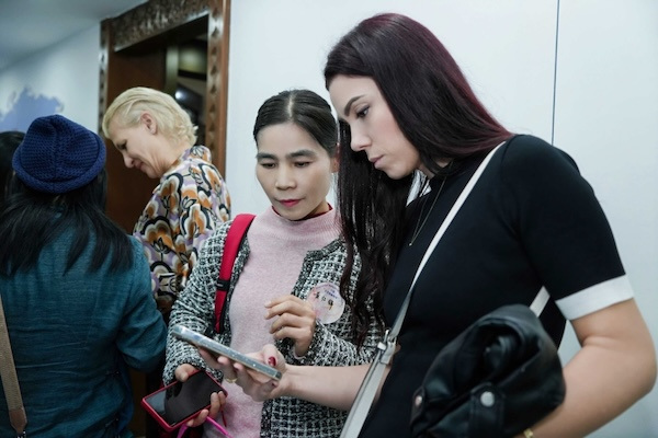 Mihaela meets with a representative of a Ningbo-based company. [Photo/Ningbo Evening News]
