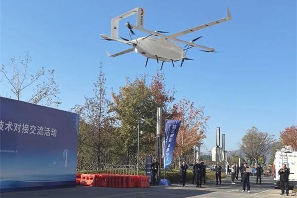 A logistics drone landed in the open area outside the Zhejiang Marine Aerospace High-End Equipment Industry Exchange venue in Taizhou, East China's Zhejiang province, on Dec 9. The drone delivered live yellow croaker from Dacheng Island to the event site in minutes.