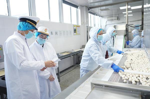 Jiaxing Customs officers inspect a Zhejiang Green Home Food factory in Jiaxing. [Photo/Jiaxing Customs]