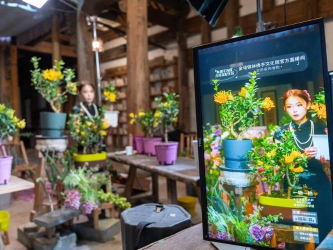 An employee livestreams agricultural products at a plantation in Chisong township, Jindong district, Jinhua, Zhejiang province, Nov 18, 2024. [Photo/IC]