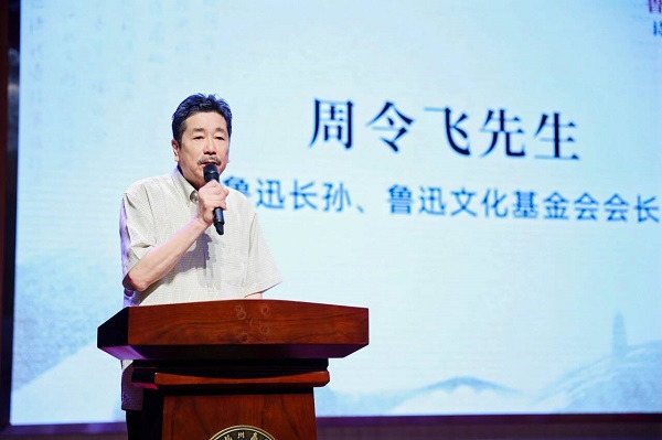 Zhou Lingfei, grandson of Lu Xun, gives an address at the event. [Photo/hangzhou.com.cn]