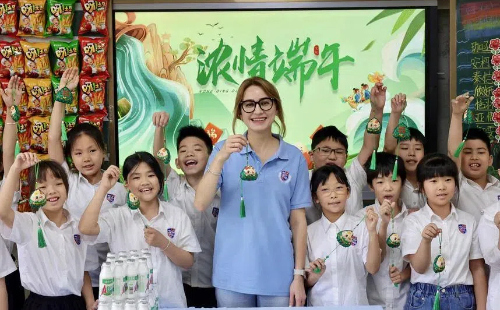 A Belarusian teacher join students in crafting fragrant sachets — a centuries-old custom believed to ward off evil and disease — at a school in Taizhou on May 30. [Photo/Tide News]