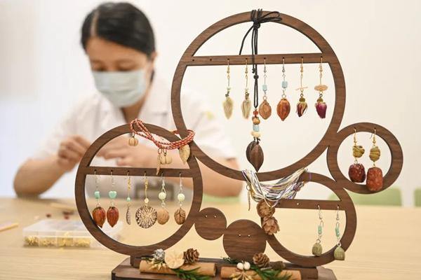 From earrings and necklaces to bracelets, local pharmacist Ruan Xiaoyan transforms herbal ingredients into delicate jewelry that not only looks fashionable but also carries cultural and medicinal significance.