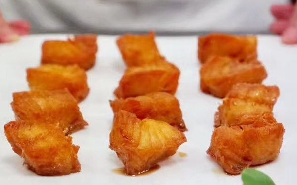 The dish named Jin Zhuan Bai Yu (golden brick white jade) is made from silver cod with crispy skin and sweet flavor. [Photo/taizhou.com.cn]