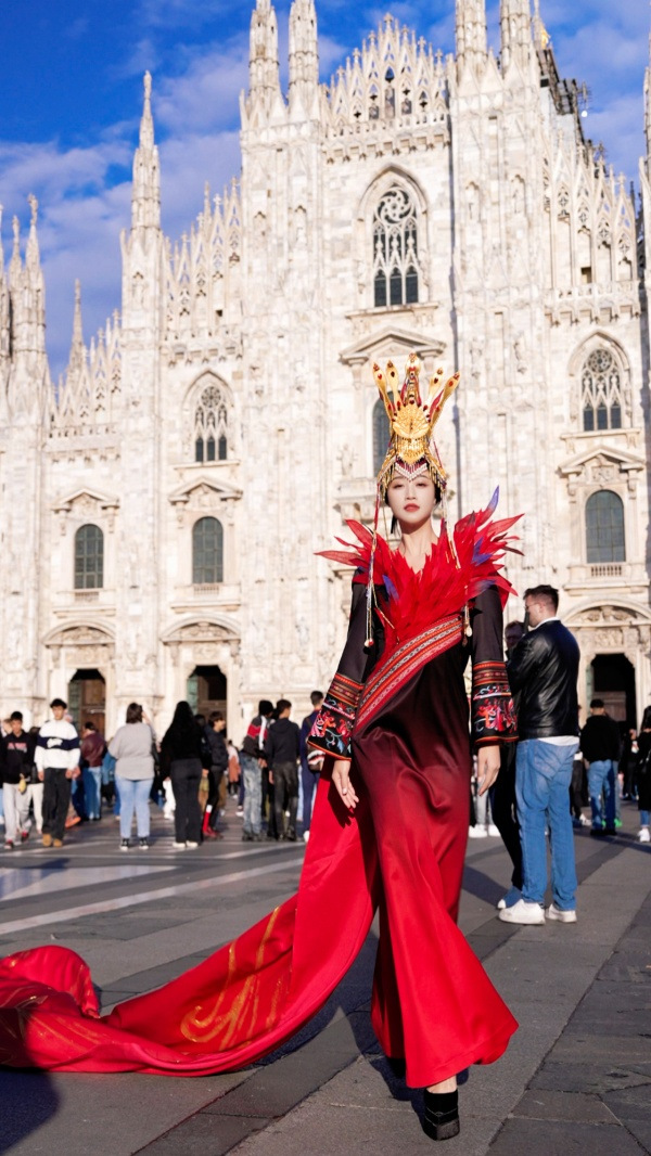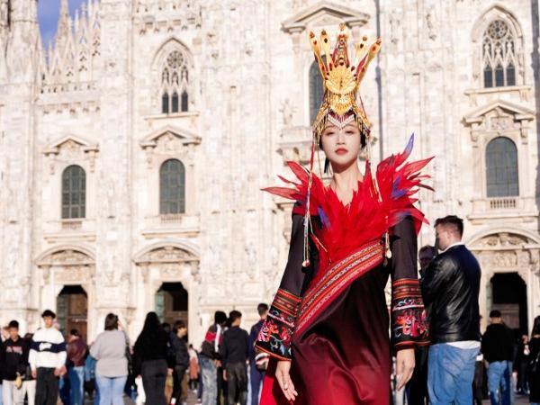Actress Lan Yingying, a promotional ambassador for She ethnic culture, appeared at Milan Fashion Week wearing the "phoenix dress", instantly drawing wide admiration.