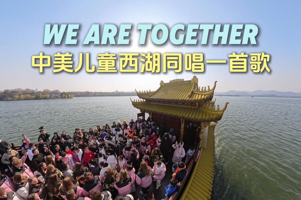 One Voice Children's Choir and Hangzhou Children's Choir sang We Are Together over the West Lake in Hangzhou on Jan 8.
