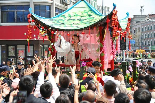 The most eye-catching part of the procession was six elaborately decorated flowered sedan chairs, carrying "Silkworm Flower Maidens" scattering silkworm flowers and candies to spread blessings to onlookers. These silkworm flowers are typically made with traditional silk-making techniques.