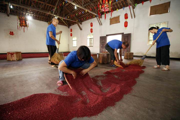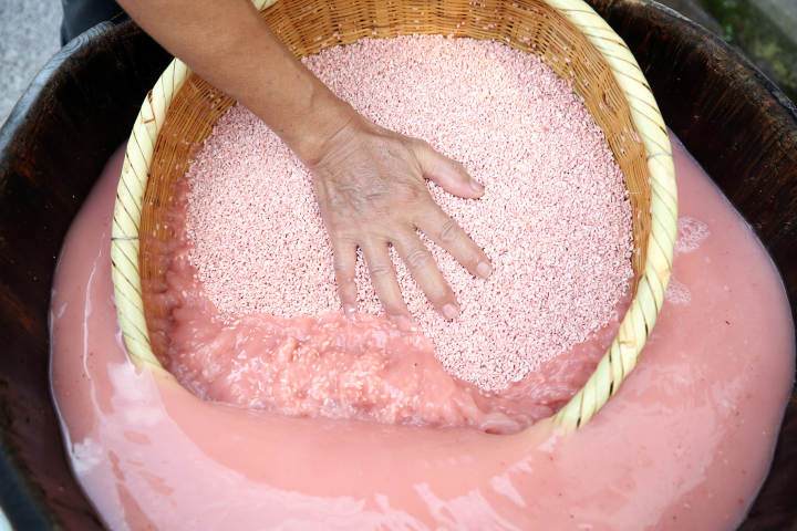 On July 20, in the Qinglian Winery of Zhongshan Natural Village, Tuliang Village, Mazhai Town, Dongyang City, several master brewers were making red yeast rice.