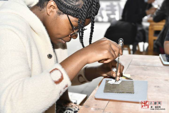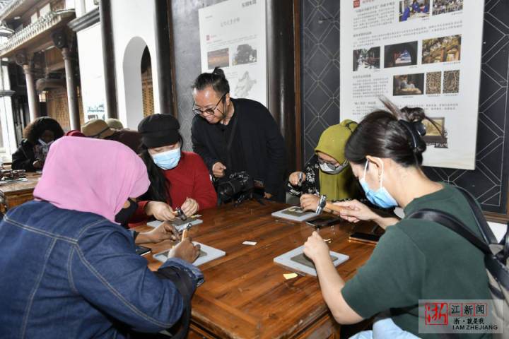 On November 10, in the Taihe Hall of Luzhai Scenic Spot in Dongyang City, 40 international students from 19 countries in Jinhua experienced intangible cultural heritage skills and made handicrafts under the guidance of Lu Xiaokan, the inheritor of Dongyang City's intangible cultural heritage handicraft tin art.