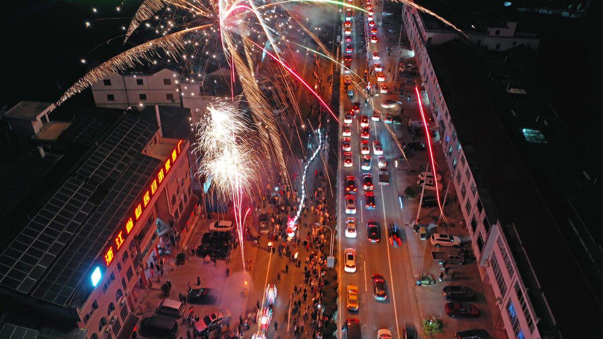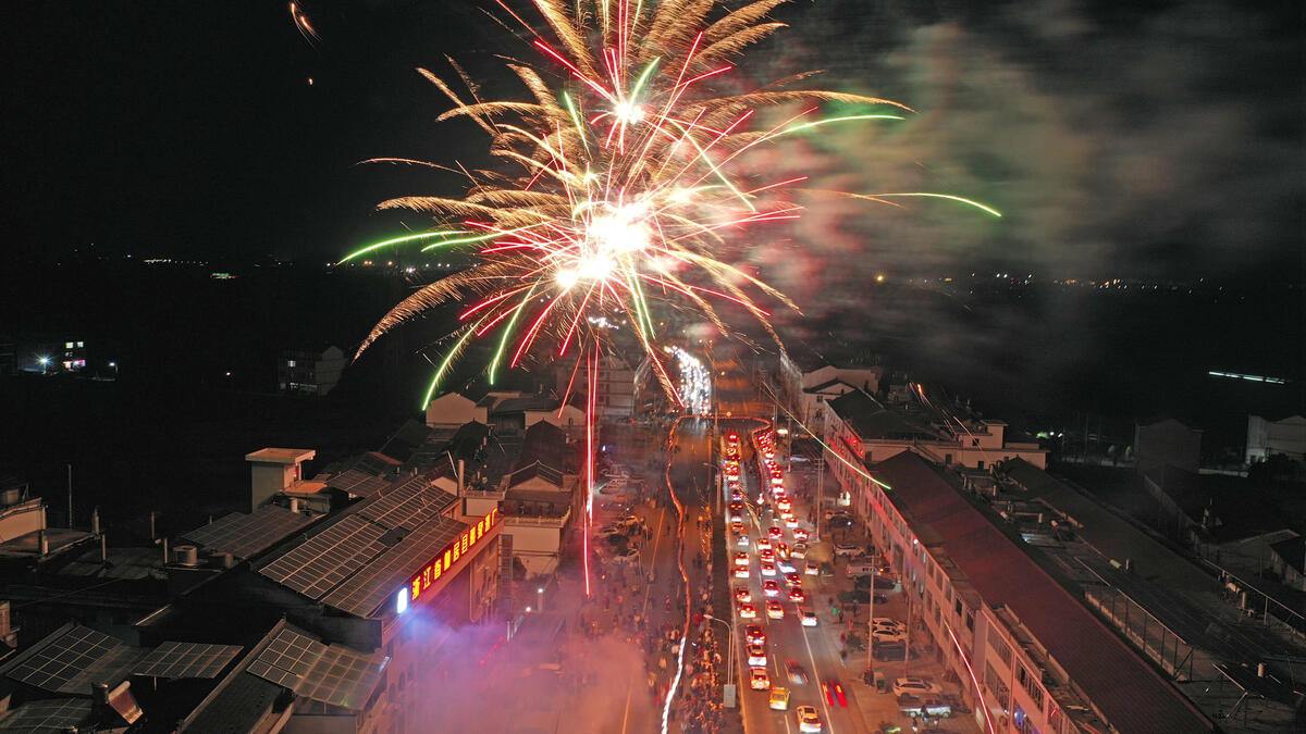That night, villagers in Banqiao Village spontaneously organized traditional folk performances such as bench dragon lanterns to inherit local culture and celebrate the new year.